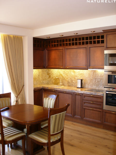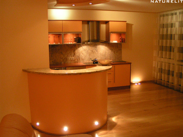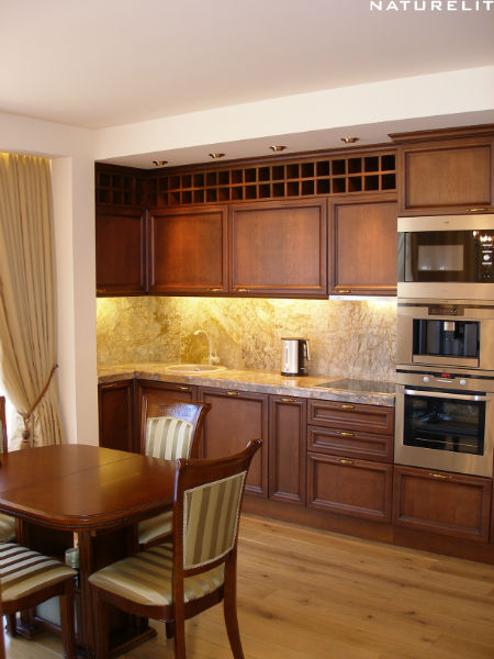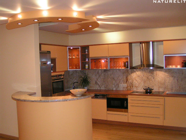 Granitiniai stalviršiai pasaulyje yra populiarūs, tačiau Lietuvoje tik dabar sparčiai didėja paklausa tokiems gaminiams. Tokie stalviršiai yra ilgaamžiai. Marmuras dažniau naudojamas palangėms konstruoti, vonios kambariuose įrengiant praustuves - čia nereikia ypatingai tvirtos medžiagos. Akmeninės grindys dažnai klojamos prieškambariuose ar vonios kambariuose. Visuomeniniuose pastatuose grindis patartina dengti granitu, o privačiuose namuose galima naudoti ir marmurą. Baseinų apdailai tinka tiek granitas, tiek marmuras. Židinių apdailai taip pat tinka marmuras, granitas, kadangi šie akmenys yra atsparūs karščiui.